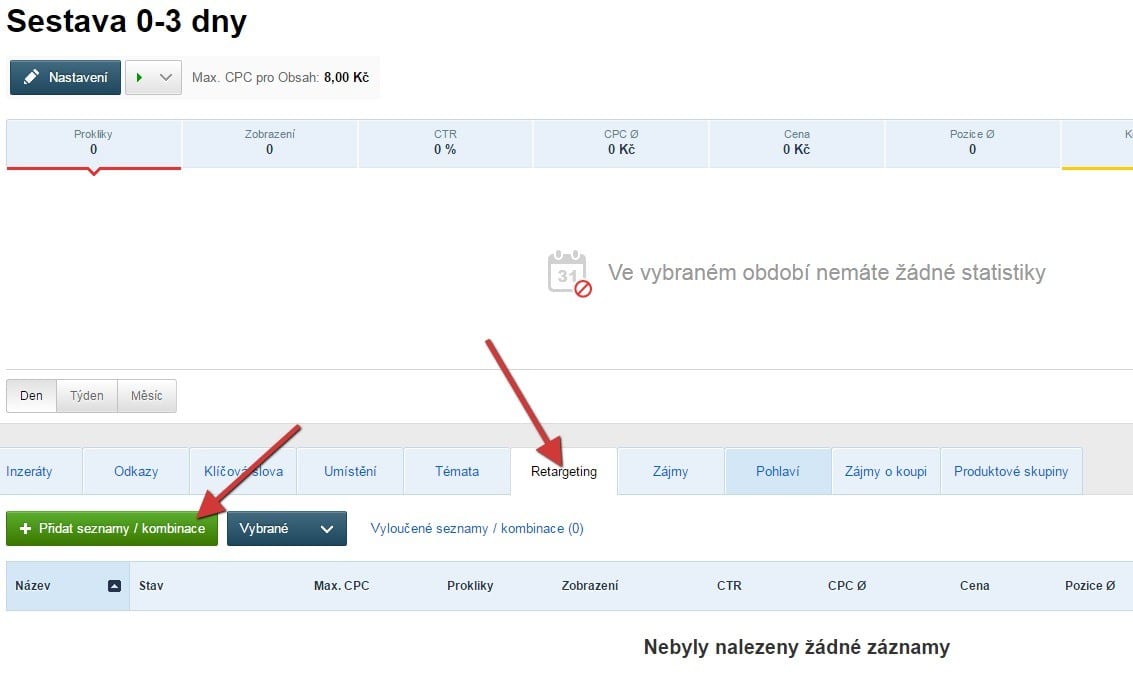 - „0-3 dny“ s max. cenou 8 Kč/proklik